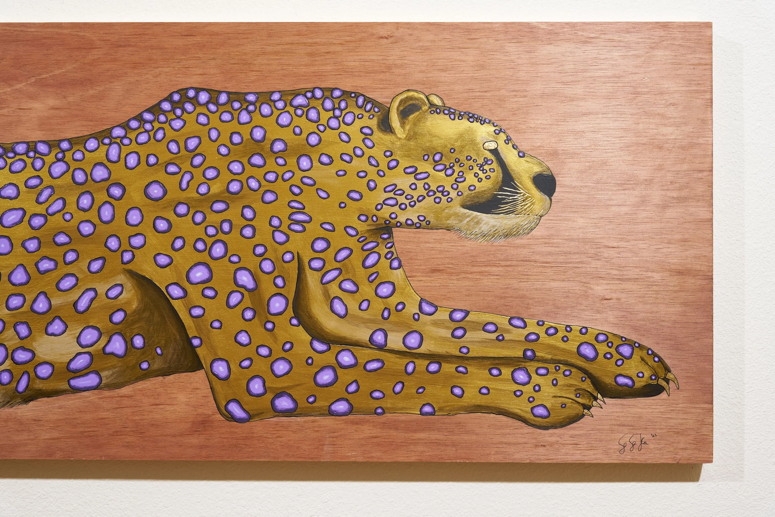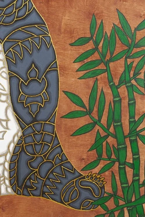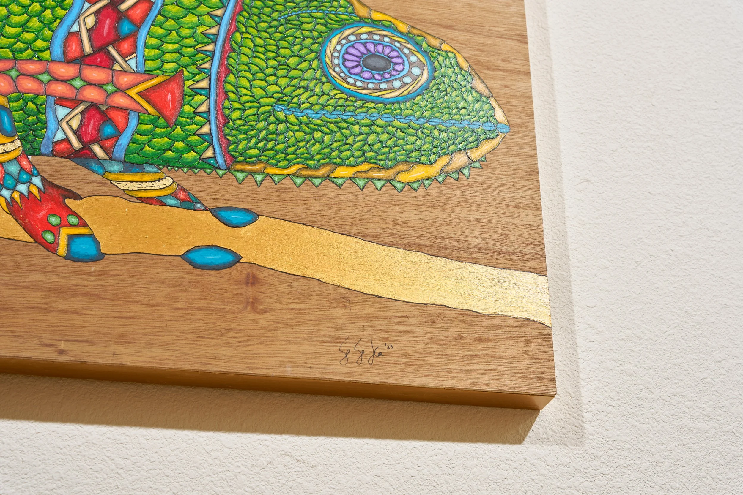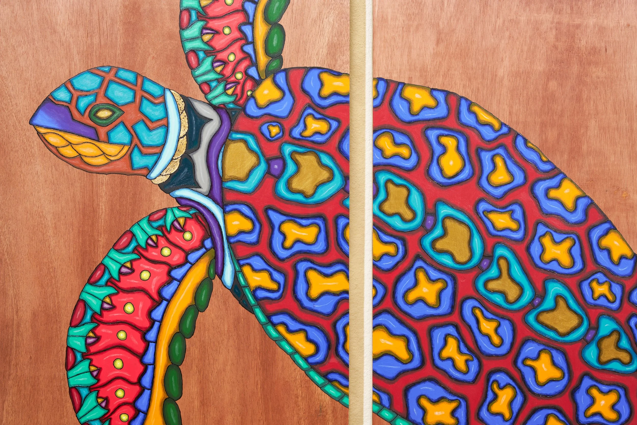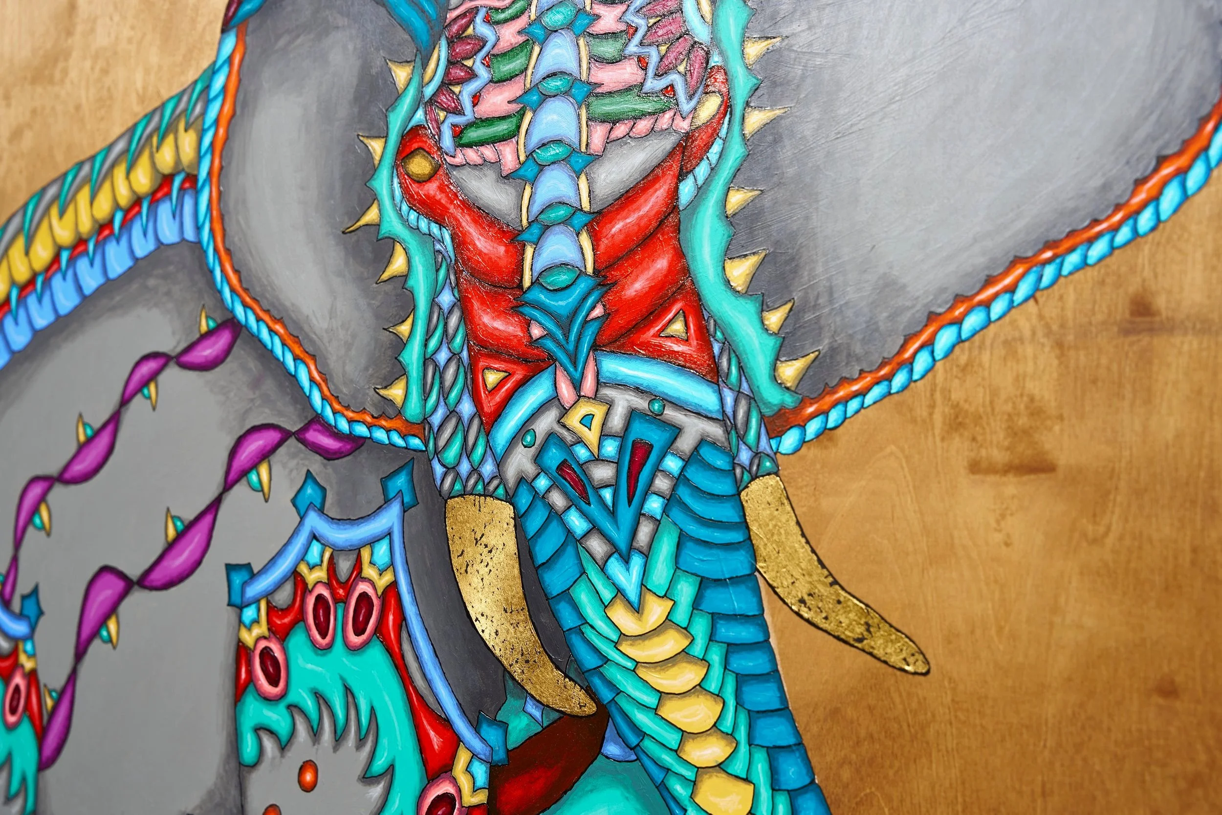 Real 24 karat gold foil was specifically crafted into each painting to add an element of eye catching glimmer amongst the vibrant color