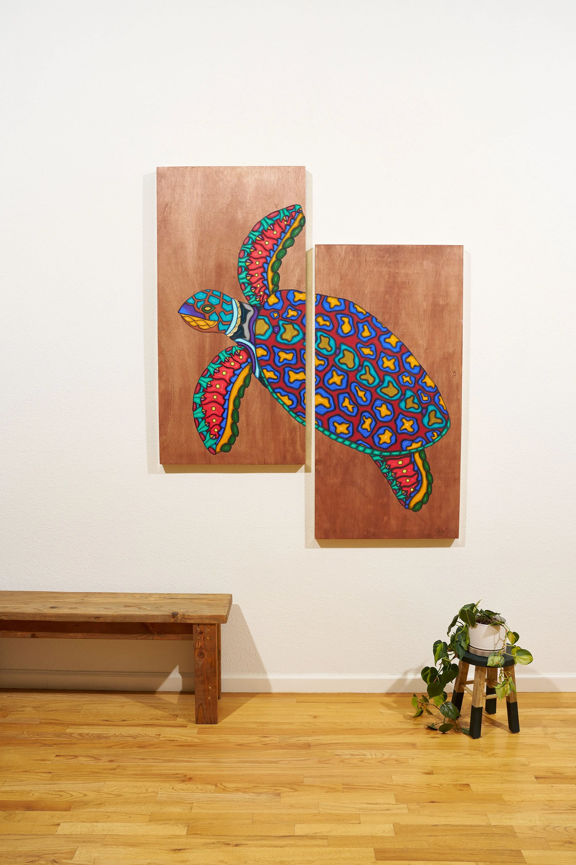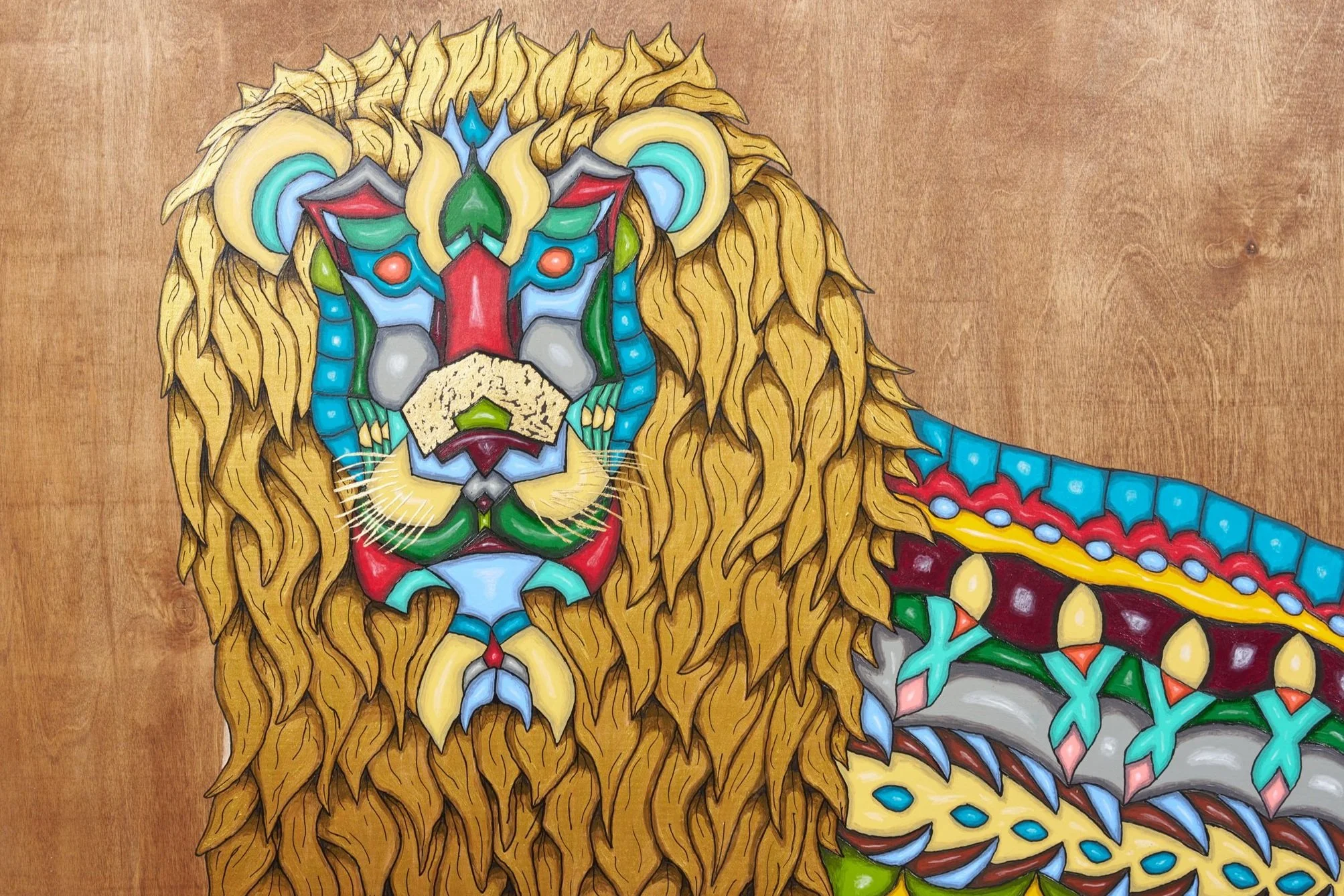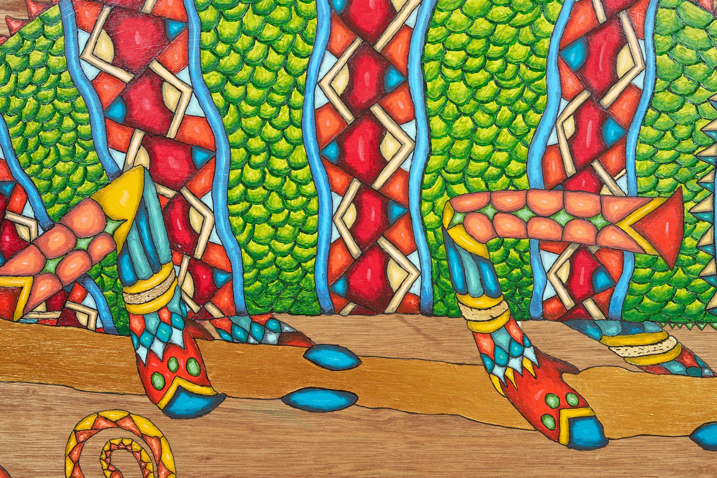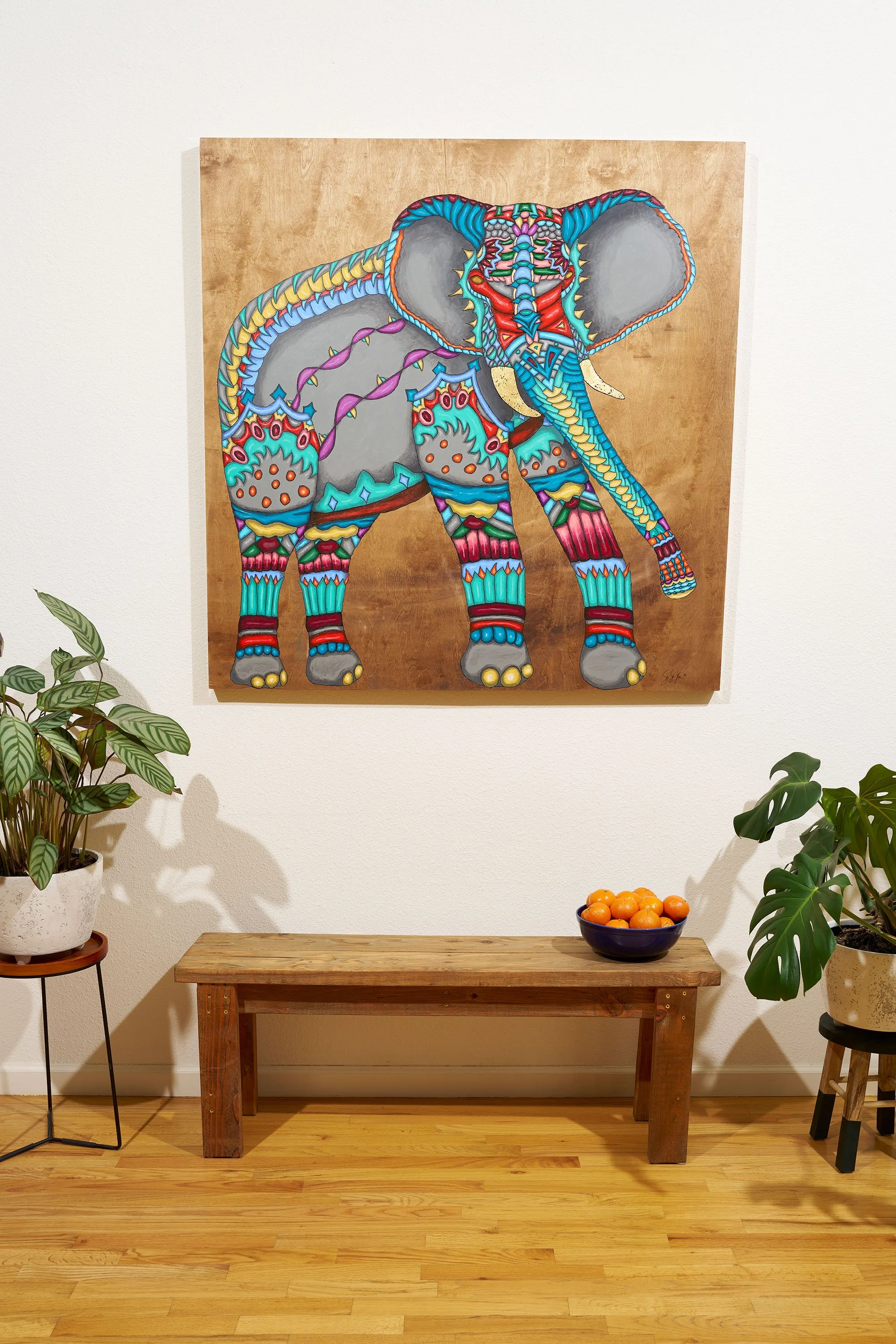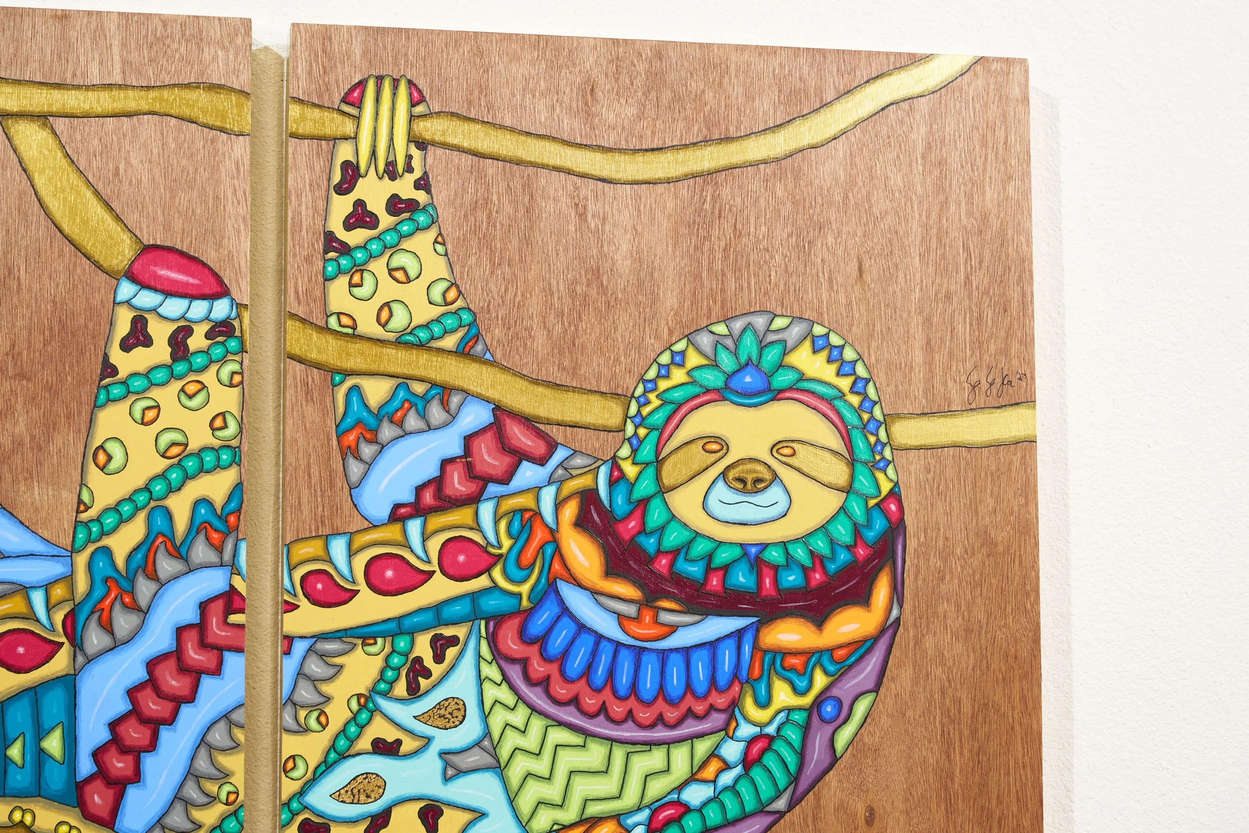 Real 24 karat gold foil was specifically crafted into each painting to add an element of eye catching glimmer amongst the vibrant color