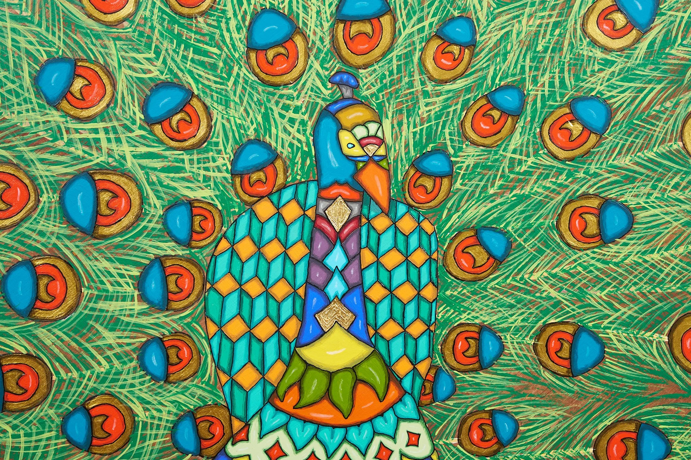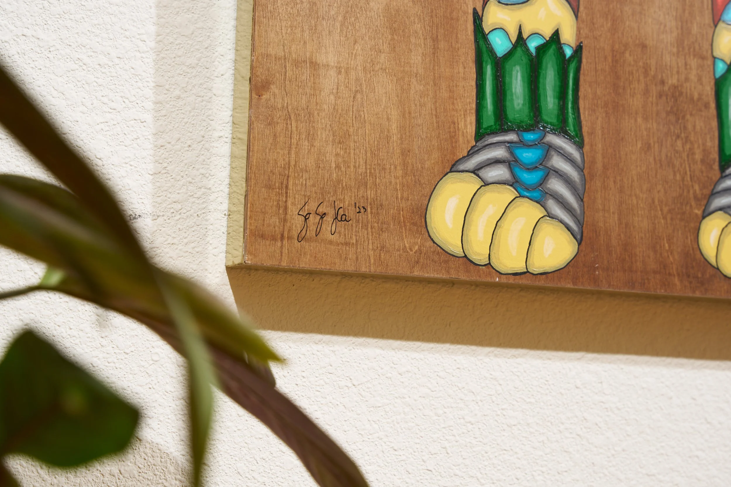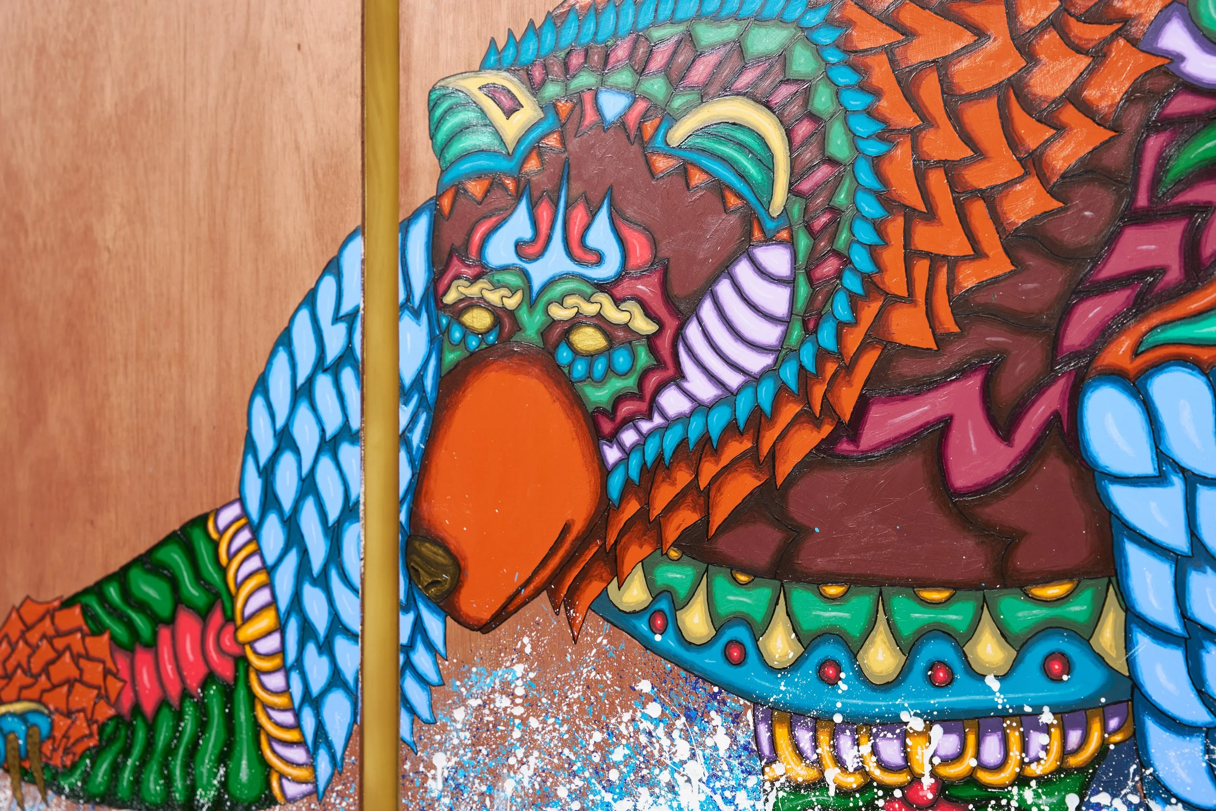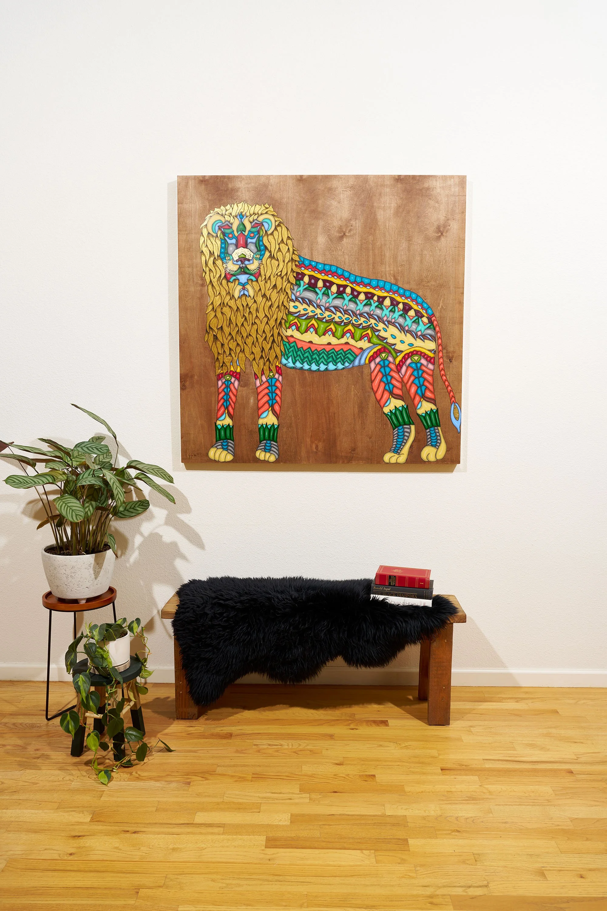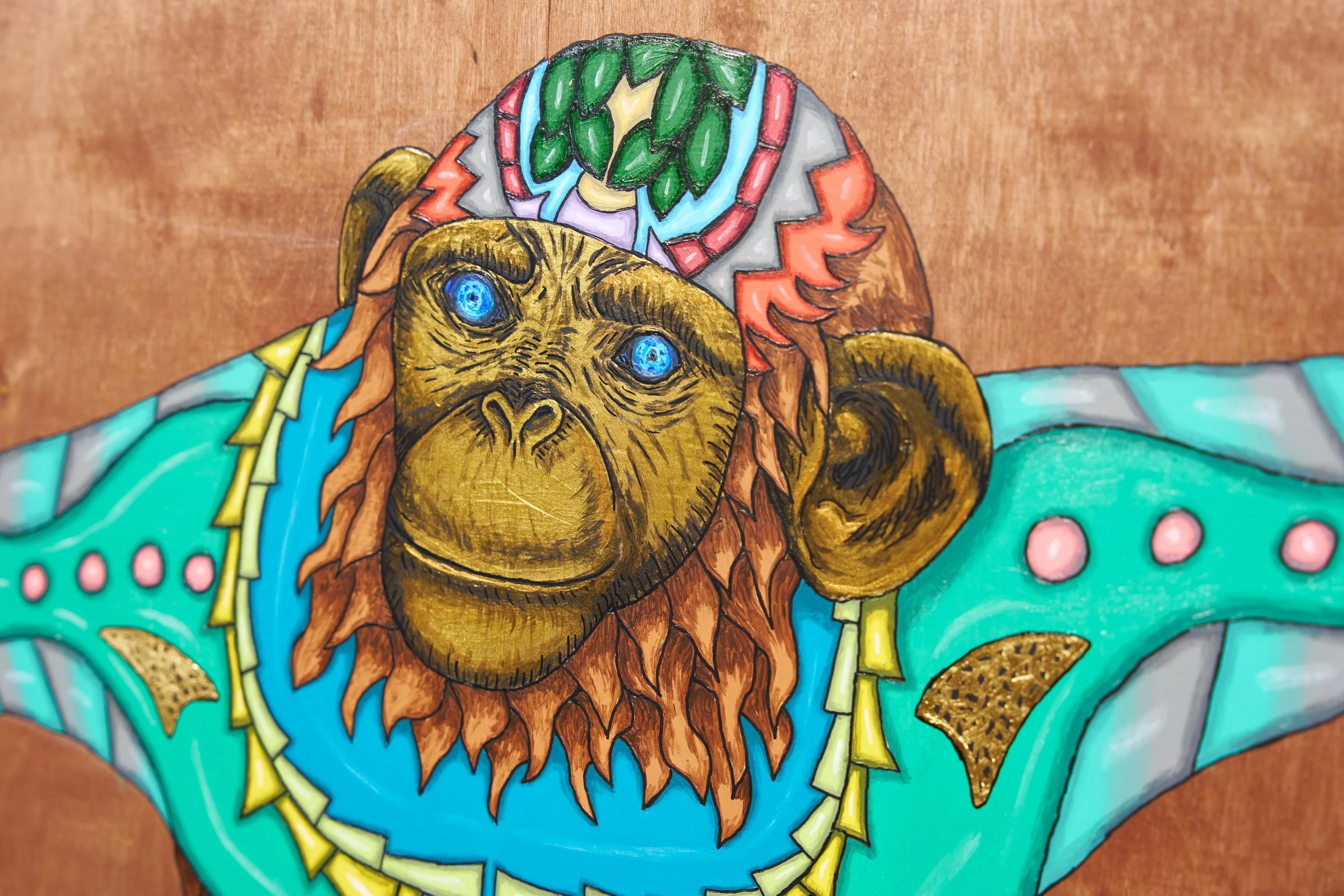 Real 24 karat gold foil was specifically crafted into each painting to add an element of eye catching glimmer amongst the vibrant color